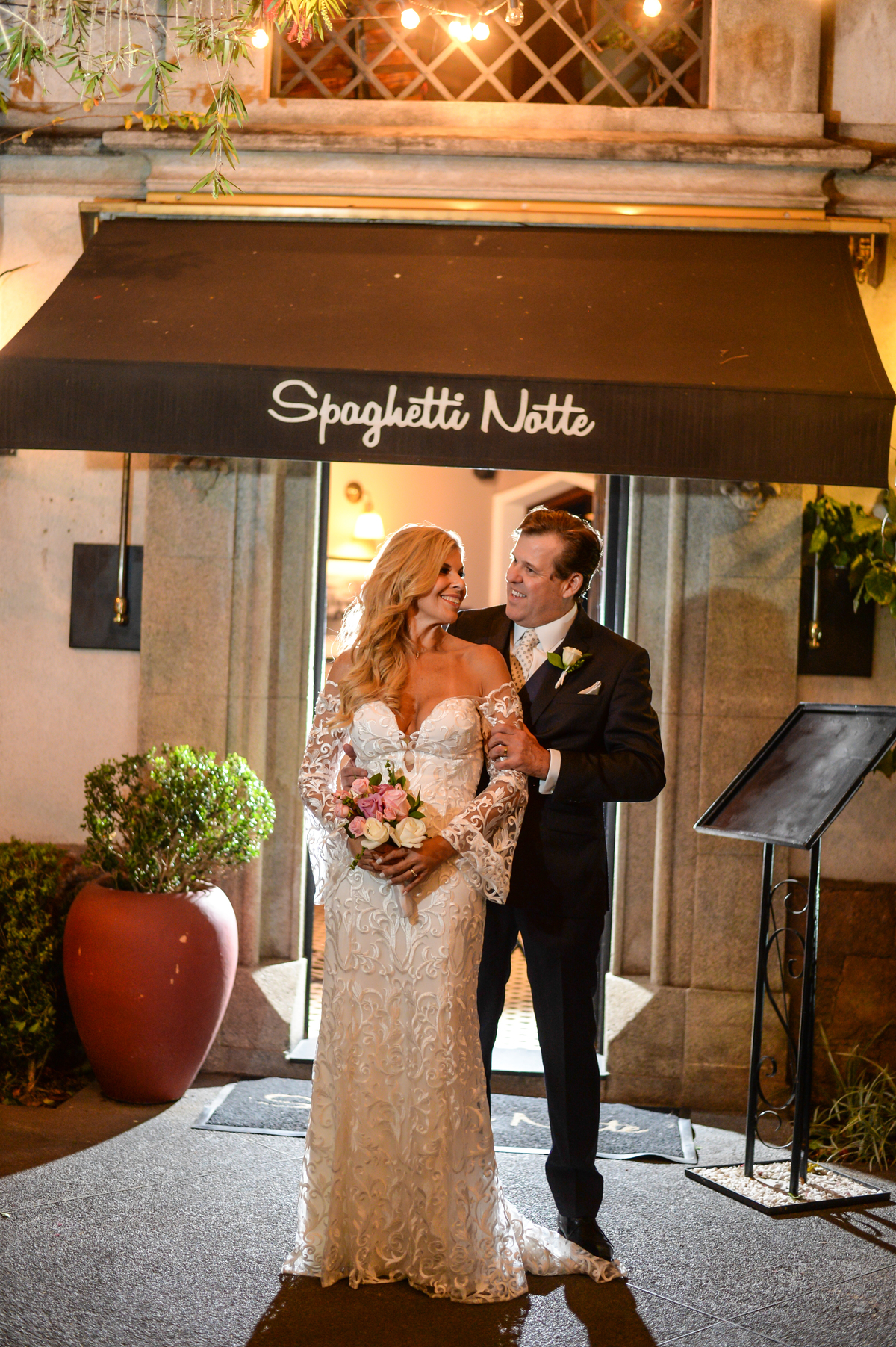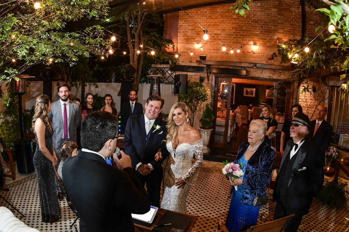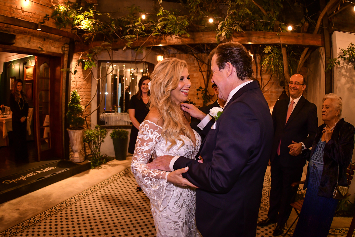 E a cerimonia realizada no Restaurante Spaghetti Notte da R. Bento de Andrade, 693 - Jardim Paulista, São Paulo - SP, 04503-011 lugar muito charmoso com um atendimento e uma comida maravilhosa , La tivemos uma cerimonia com muita emoção e cheio de lagrimas de alegrias . Cerimonia esta celebrada pelo maravilhoso Paulo Ramos https://www.cerimonialista.net.br/ A noiva se arrumou junto a sua filha podendo assim passar momentos de alegria e muita descontração antes de ir para cerimonia fazendo um penteado maravilhoso e uma maquiagem única para este dia tão especial ., Maquiagem esta feita no Four Seasons Hotel https://www.fourseasons.com/saopaulo/ Pela Greice Rincon .