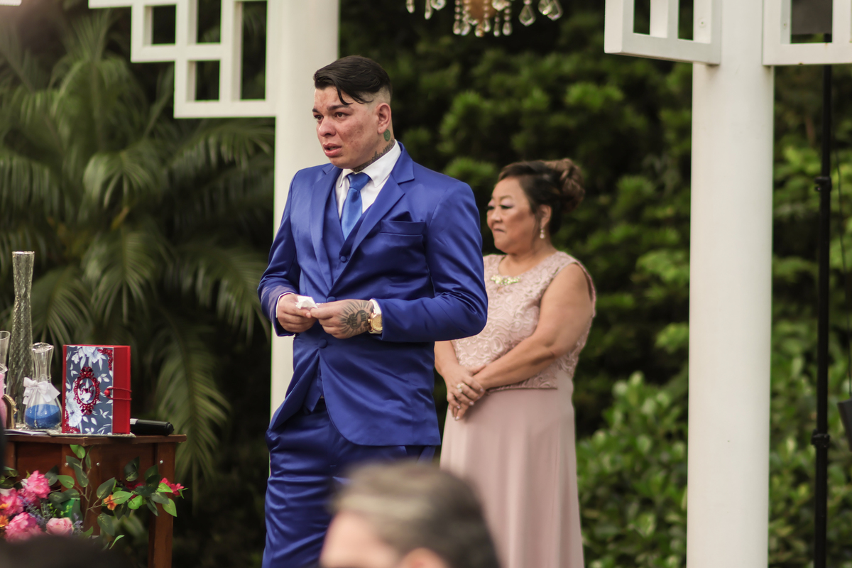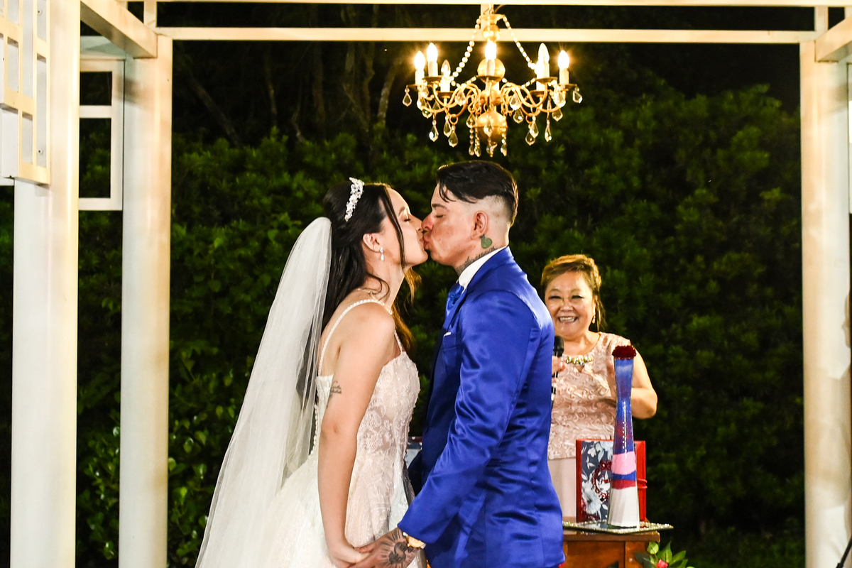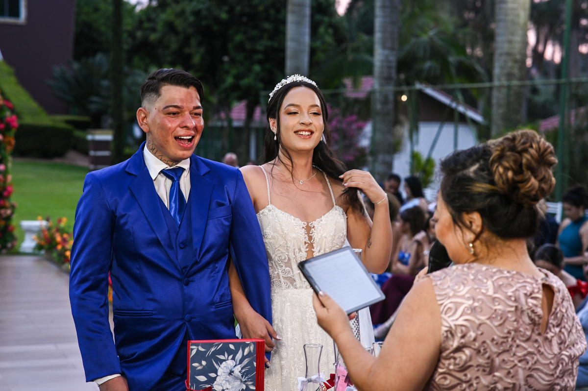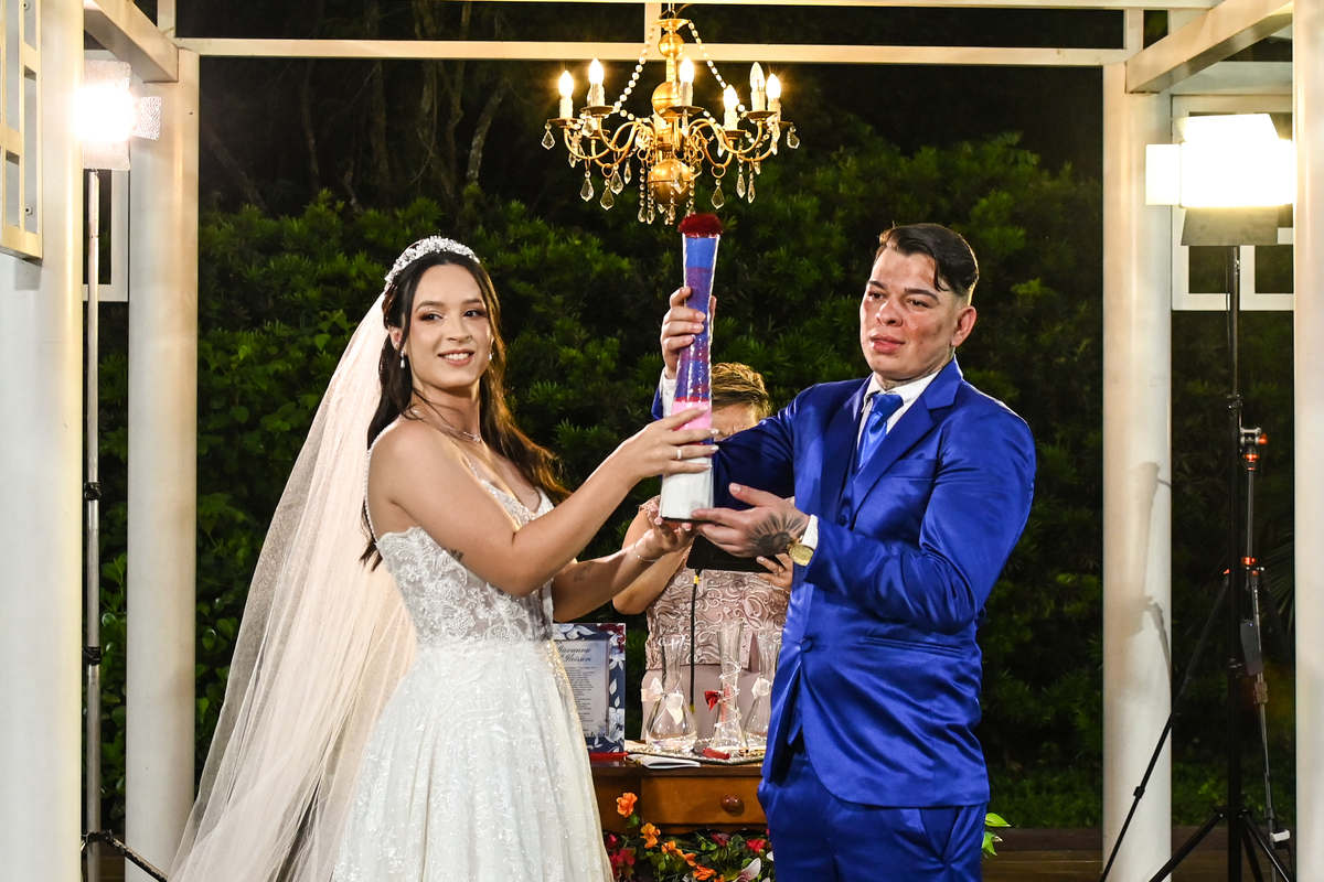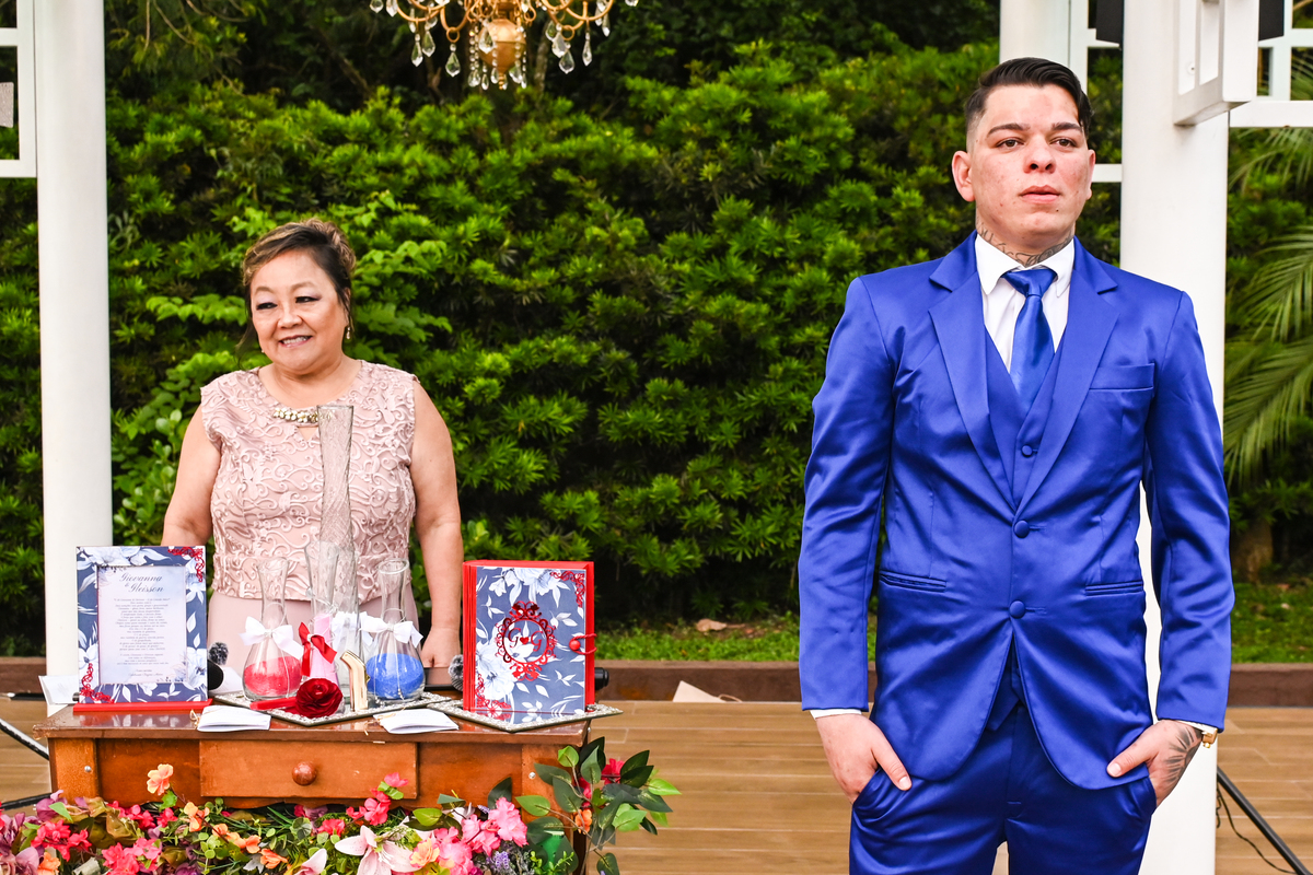 A cerimônia, conduzida com sensibilidade e doçura pela celebrante Regina Midori, tocou o coração de todos os presentes. As palavras ditas ali não foram apenas promessas, mas declarações sinceras de uma história construída com cumplicidade, respeito e muito amor. As lágrimas vieram sem pedir licença — misturadas a sorrisos verdadeiros e abraços cheios de significado.