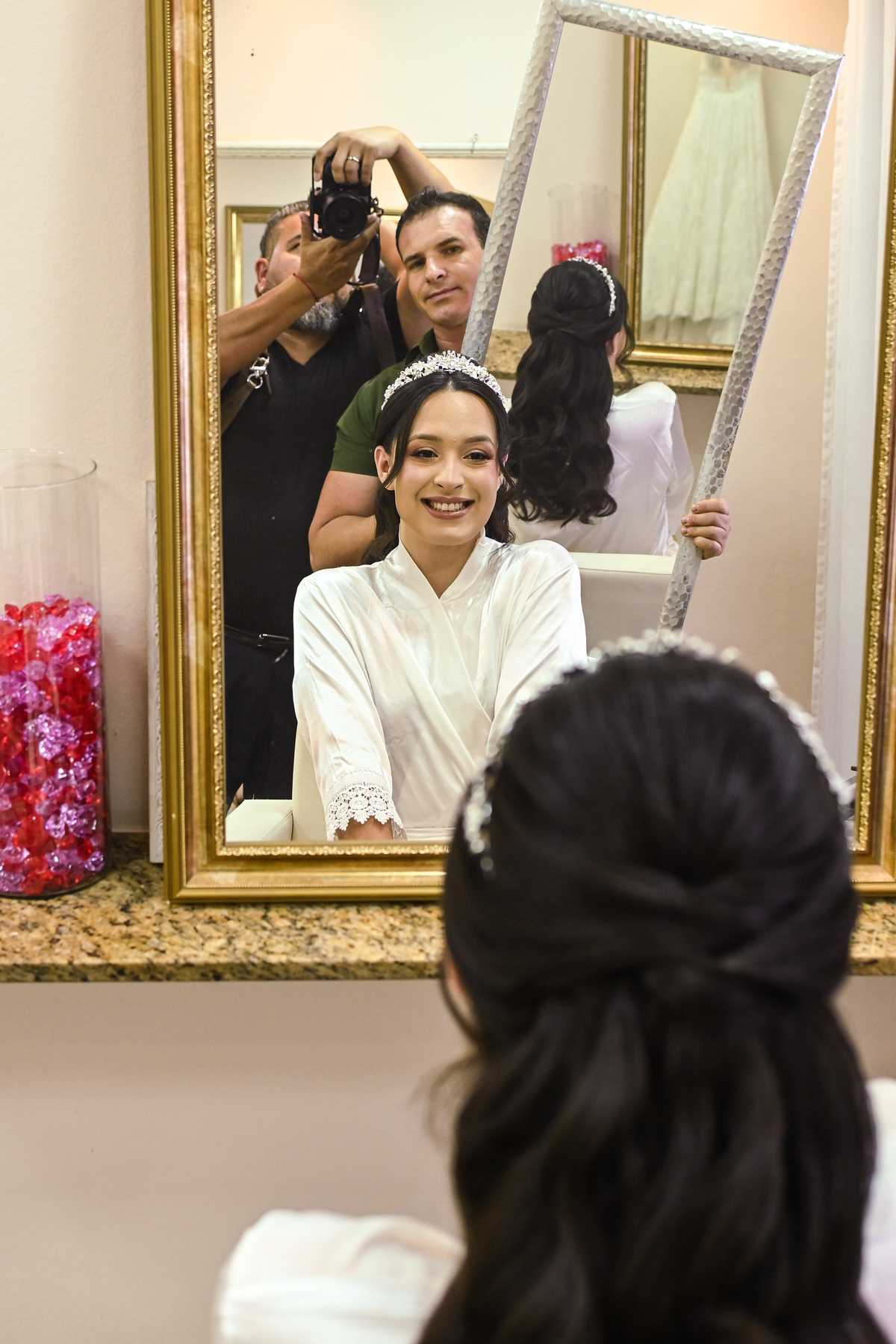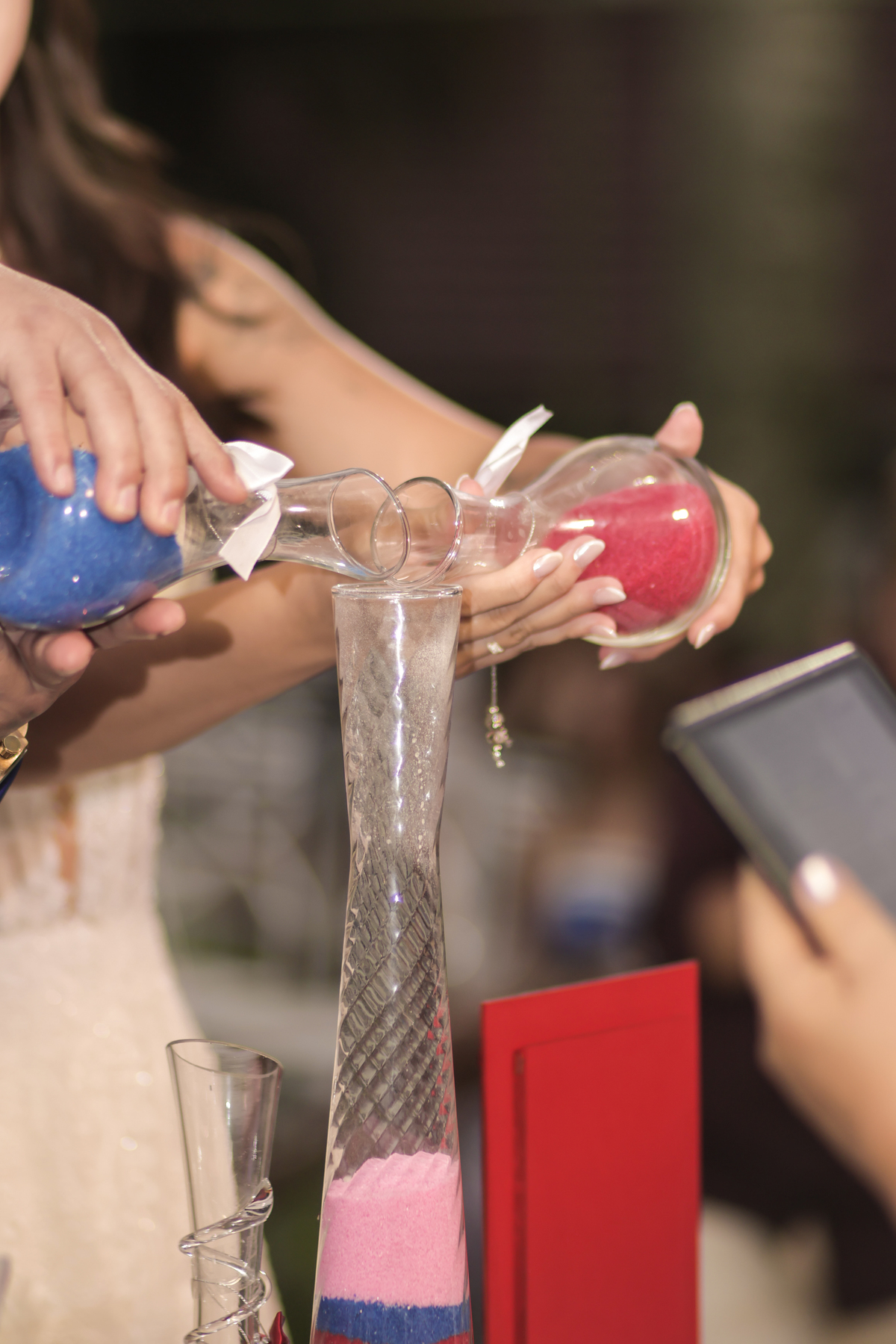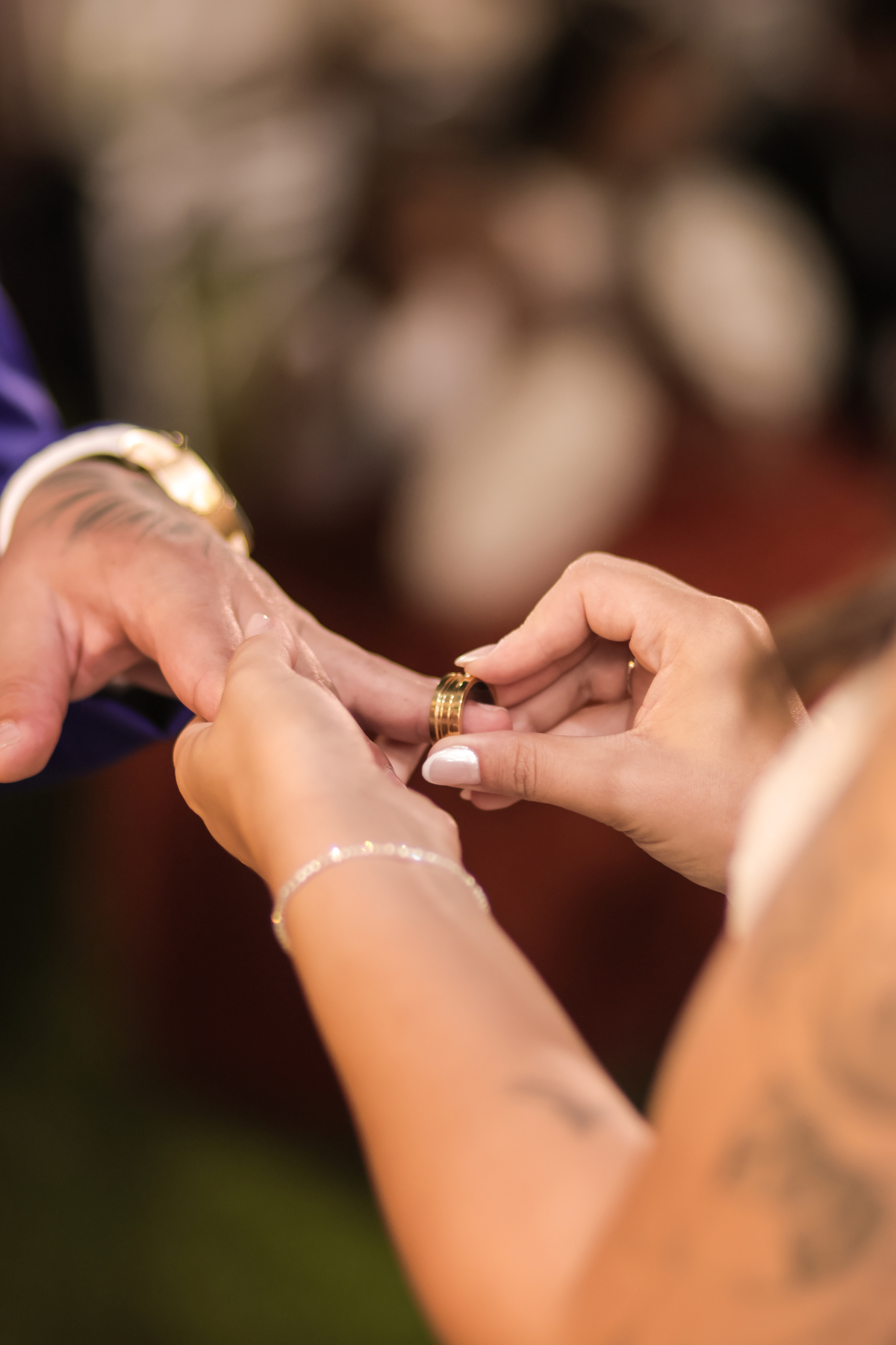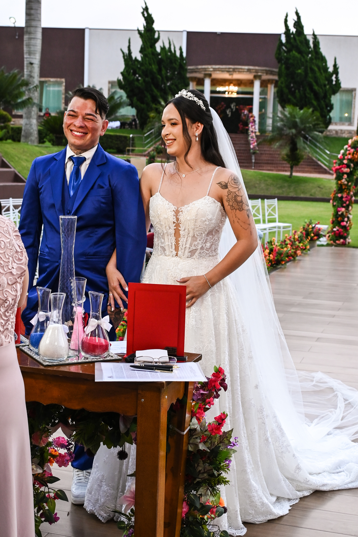 A cerimônia, conduzida com sensibilidade e doçura pela celebrante Regina Midori, tocou o coração de todos os presentes. As palavras ditas ali não foram apenas promessas, mas declarações sinceras de uma história construída com cumplicidade, respeito e muito amor. As lágrimas vieram sem pedir licença — misturadas a sorrisos verdadeiros e abraços cheios de significado.