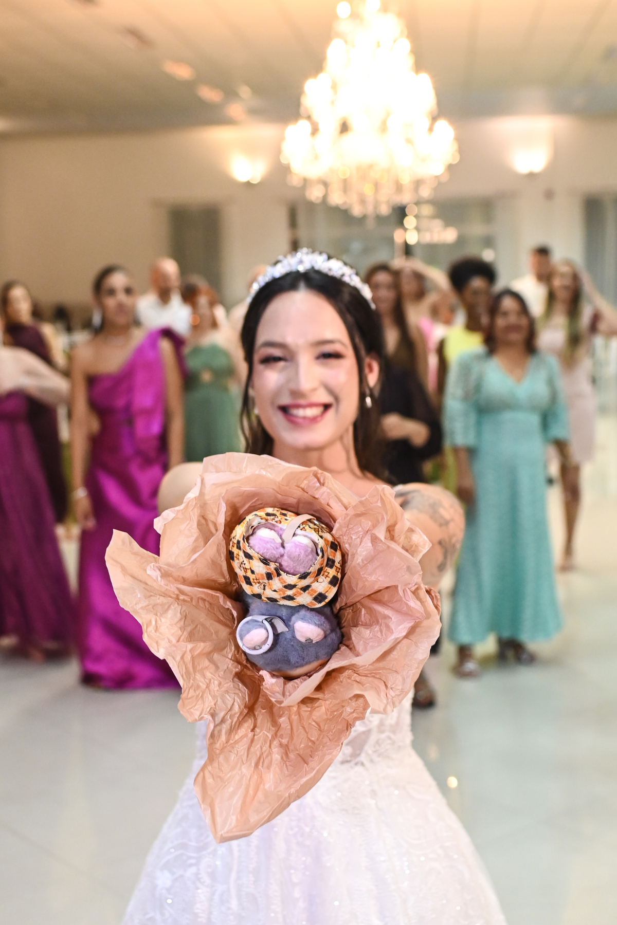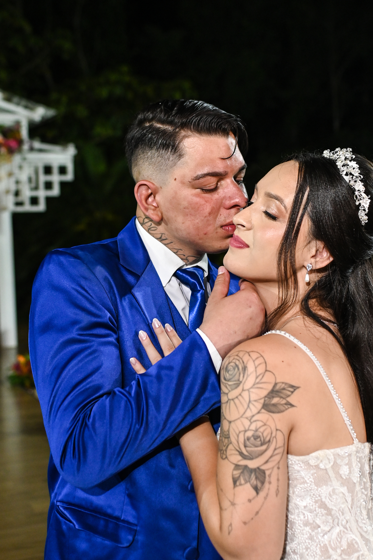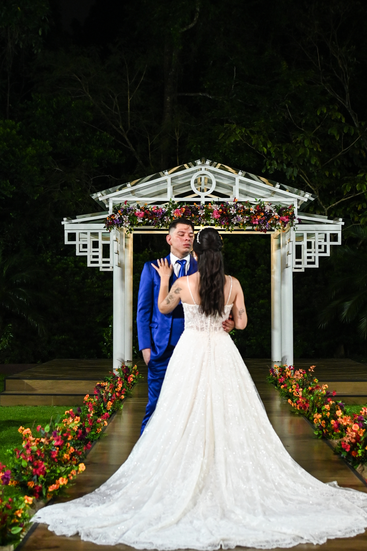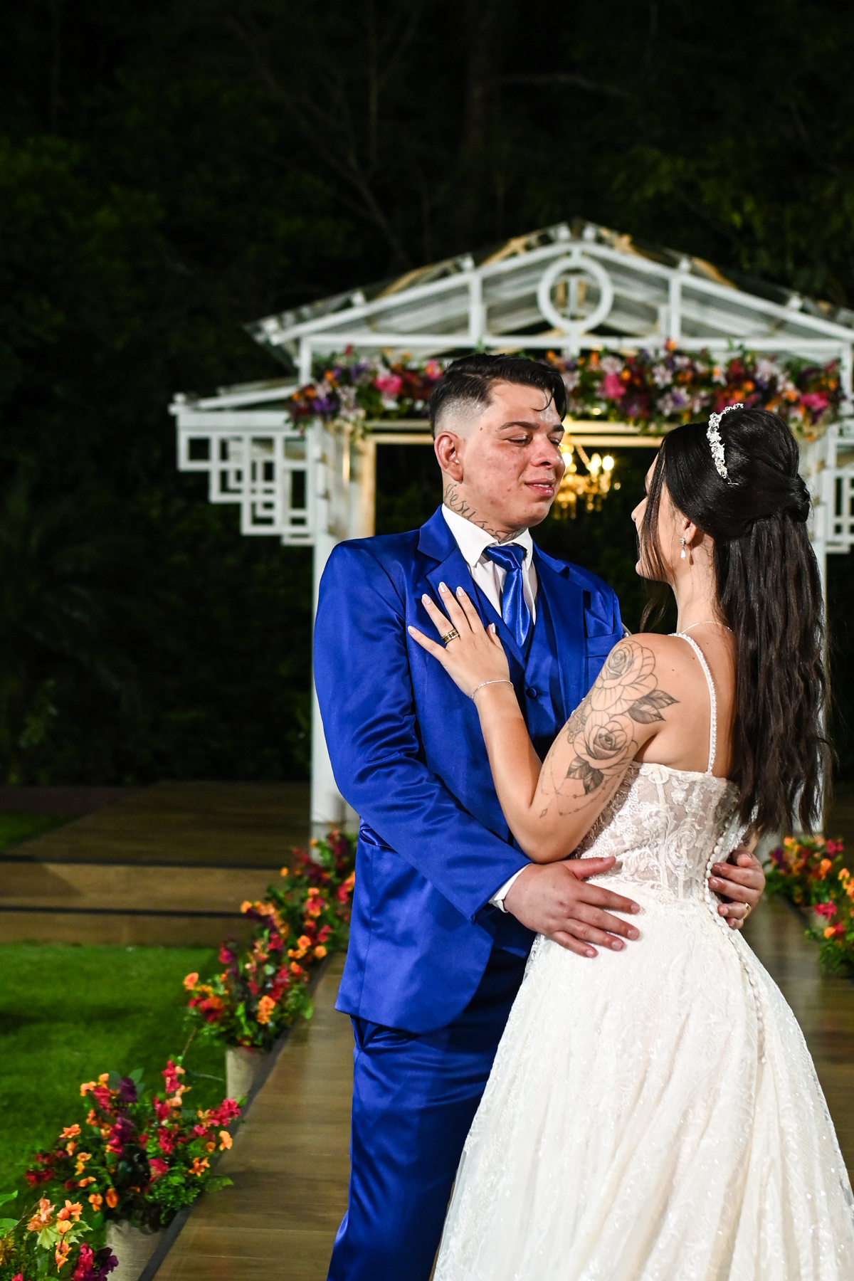 A beleza do cenário ganhou vida com a decoração assinada pela DecorAnna.Festas, criando um ambiente acolhedor e romântico, onde cada detalhe parecia refletir a essência do casal. A noiva, radiante em seu vestido da Nova Noiva, viveu momentos de emoção e expectativa enquanto se preparava no Salão Leandro Fernandes, sentindo o coração bater mais forte a cada minuto que se aproximava do “sim”.